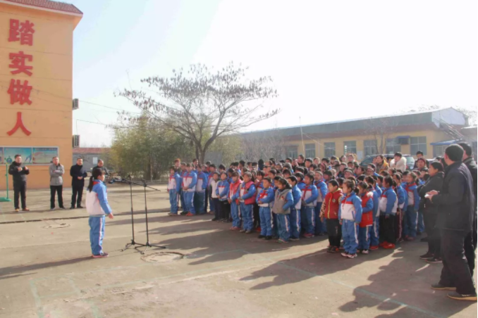 11時整,全校老師和同學們相聚在學校操場,愛心捐贈活動正式開始,出席本次捐贈活動的有:九三學社的劉彥濤秘書長、侯家華主委、泰安市化馬灣鎮(zhèn)教委彭主任與健源生物董事長王誠先生、總經(jīng)理助理兼辦公室主任王玲女士。學校張校長對九三學社與山東健源生物科技有限公司的捐贈表示感謝,感謝九三學社以及社會各界對學校教育的關(guān)注和支持,感謝在寒冬里送來溫暖和祝福。并告誡全校師生要懂得感恩,將這份愛心傳遞下去。