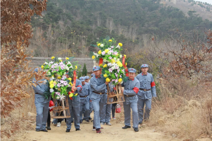 青山默默,松濤陣陣,在莊嚴肅穆的泰安徂徠山烈士陵園前,向革命英烈敬獻花籃,緬懷革命先烈。面對鮮紅的黨旗,全體共產黨員重溫入黨誓詞,做出莊嚴宣誓。