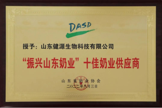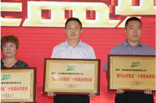 山東健源生物科技有限公司榮獲“振興山東奶業”十佳奶業供應商 稱號