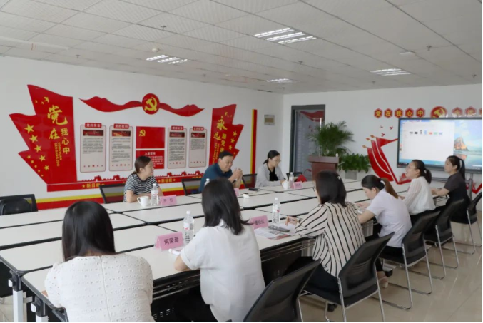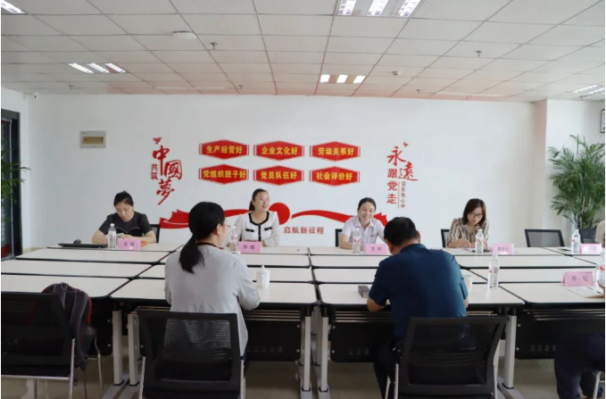 山東健源生物辦公室副主任鞏倩向領(lǐng)導(dǎo)們介紹黨建文化、健源生物企業(yè)文化.
