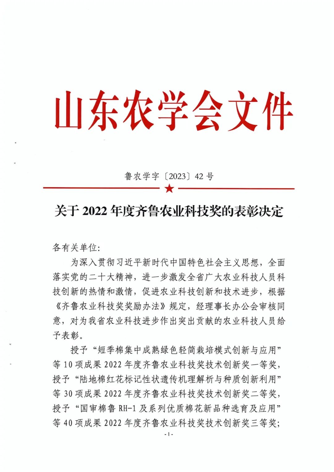榮獲2022年度齊魯農(nóng)業(yè)科技獎