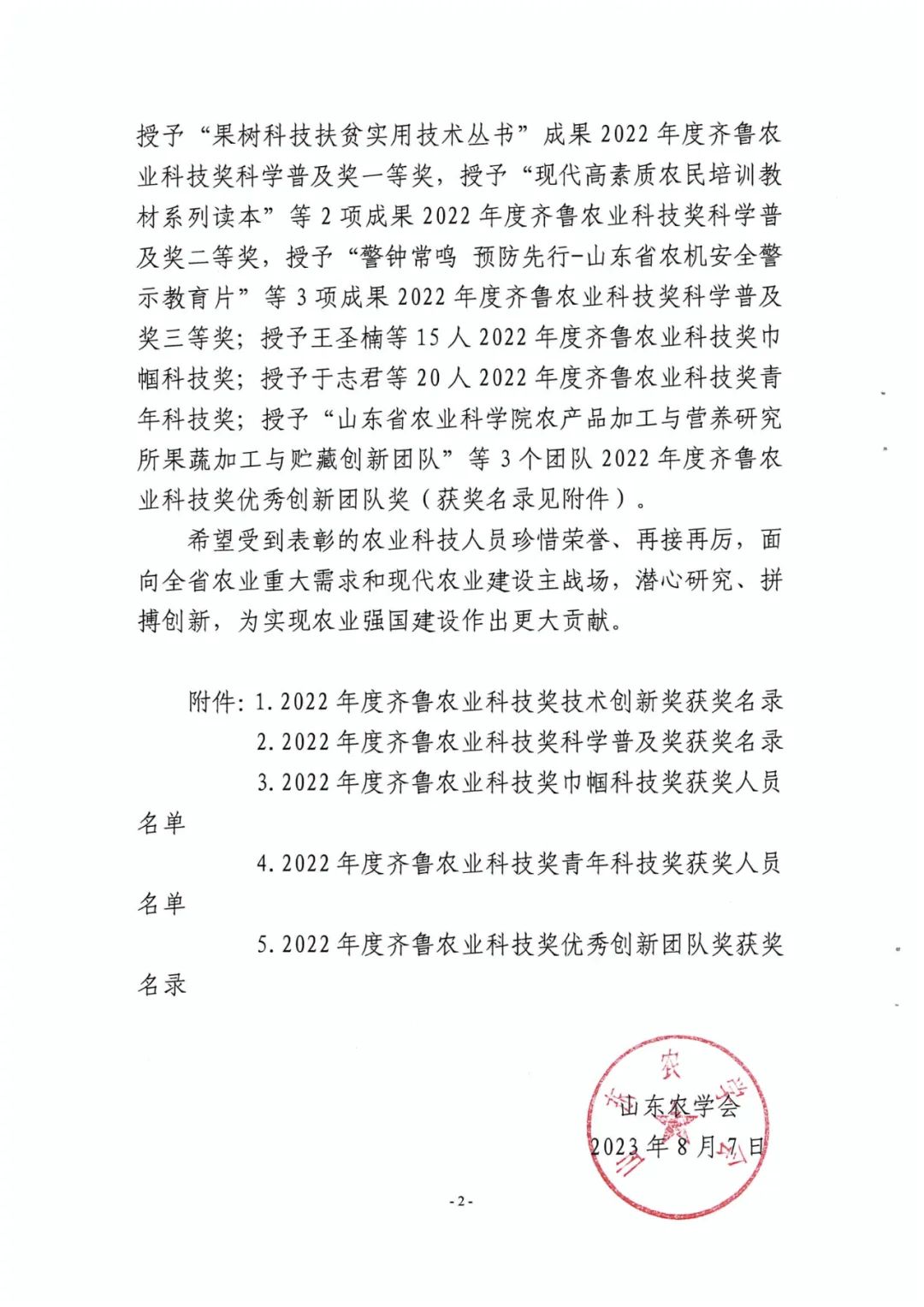 附:關(guān)于2022年度齊魯農(nóng)業(yè)科技獎的表彰決定及健源獲獎名錄