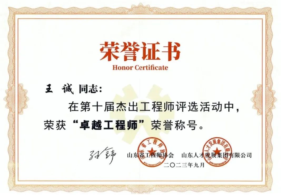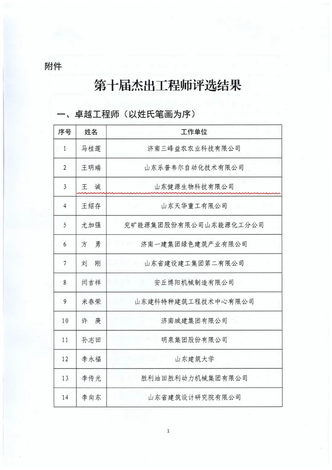 發(fā)布時間:[2023-12-20 8:8:46] 瀏覽量:3675次日前,由山東省工程師協(xié)會、山東人才發(fā)展集團(tuán)聯(lián)合舉辦的第十屆杰出工程師評選結(jié)果揭曉,山東健源生物科技有限公司董事長王誠榮獲“卓越工程師”稱 號。