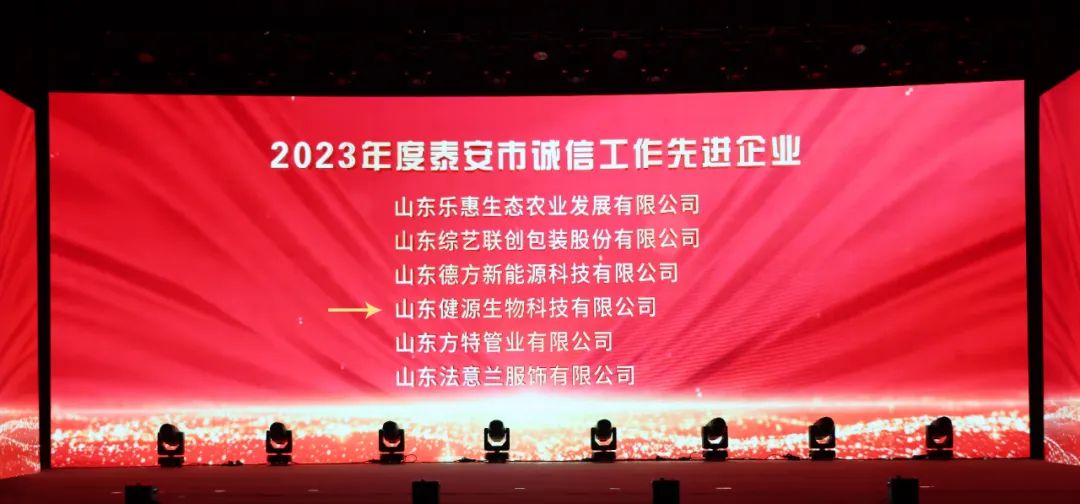 市泰山企業家審委會經申報并認真評選,決定授予山東健源生物科技有限公司等24家企業(單位)為“泰安市誠信工作先進企業”稱號。