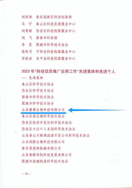 董事長王誠榮獲2023年“科技信息推廣應(yīng)用工作”先進(jìn)個(gè)人,健源生物榮獲先進(jìn)集體