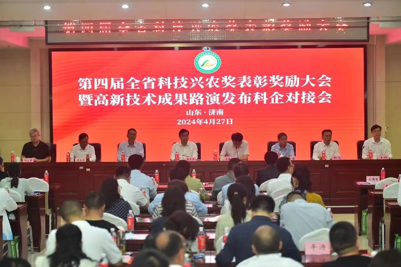 發布時間:[2024-4-28 16:49:12] 瀏覽量:3310次為貫徹落實習近平總書記在中央農村工作會議講話精神,促進農業科技成果轉移轉化,加快產學研融合催發新質生產力,實現全省農業轉型升級和高質量發展,2024年4月27日山東省農業科技轉化促進會于山東省農科院召開第四屆全省科技興農獎表彰大會暨高新技術成果路演發布科企對接會,山東健源生物科技有限公司作為獲獎單位受邀參加本次會議。