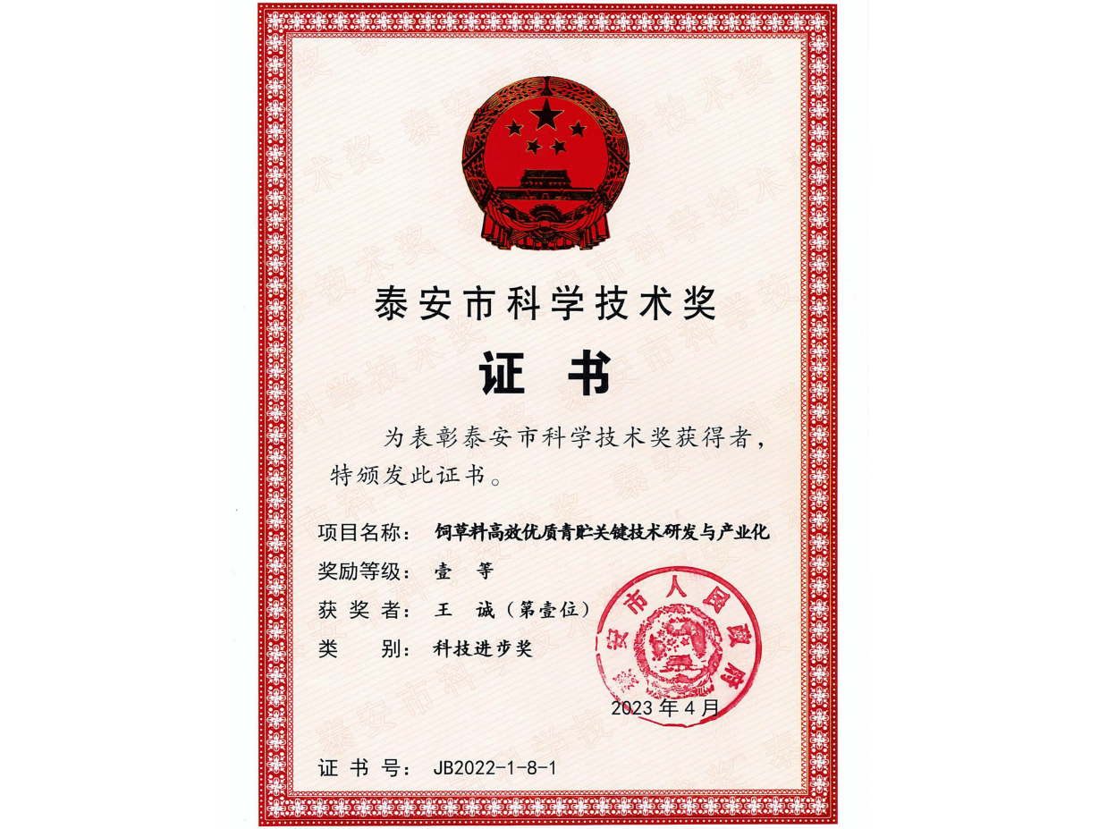 作為項(xiàng)目第一完成人榮獲泰安市科學(xué)技術(shù)進(jìn)步一等獎(jiǎng)