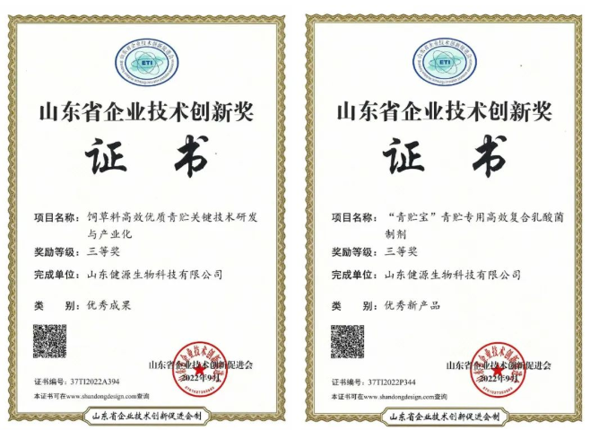祝賀山東健源生物項目榮獲山東省企業技術創新獎優秀成果三等獎、山東省企業技術創新獎優秀新產品三等獎。...
