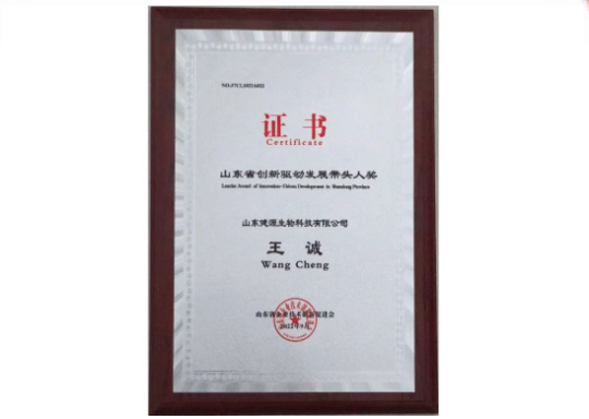 2022-10-5 山東健源生物董事長王誠榮獲山東省創新驅動發展帶頭人獎
