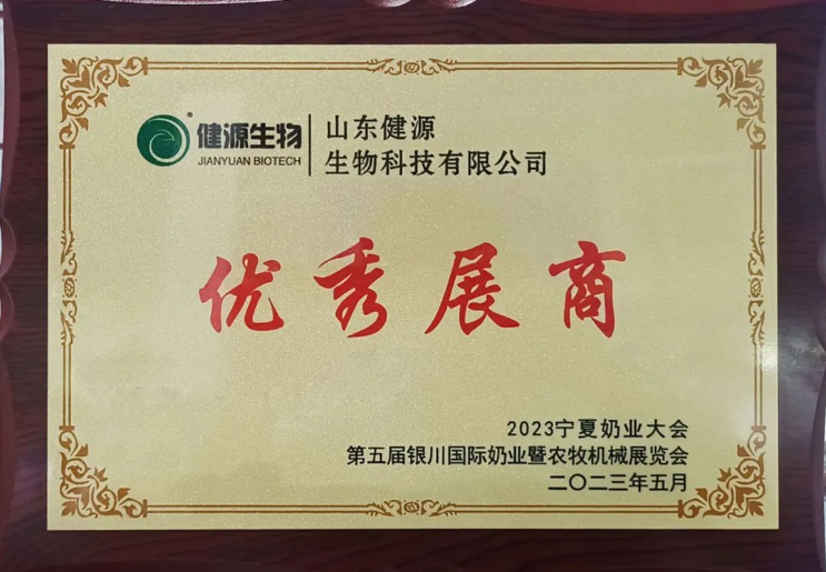 山東健源生物科技有限公司榮獲2023寧夏奶業(yè)大會/第五屆銀川國際奶業(yè)暨農(nóng)牧機(jī)械展覽會“優(yōu)秀展商”稱號。
